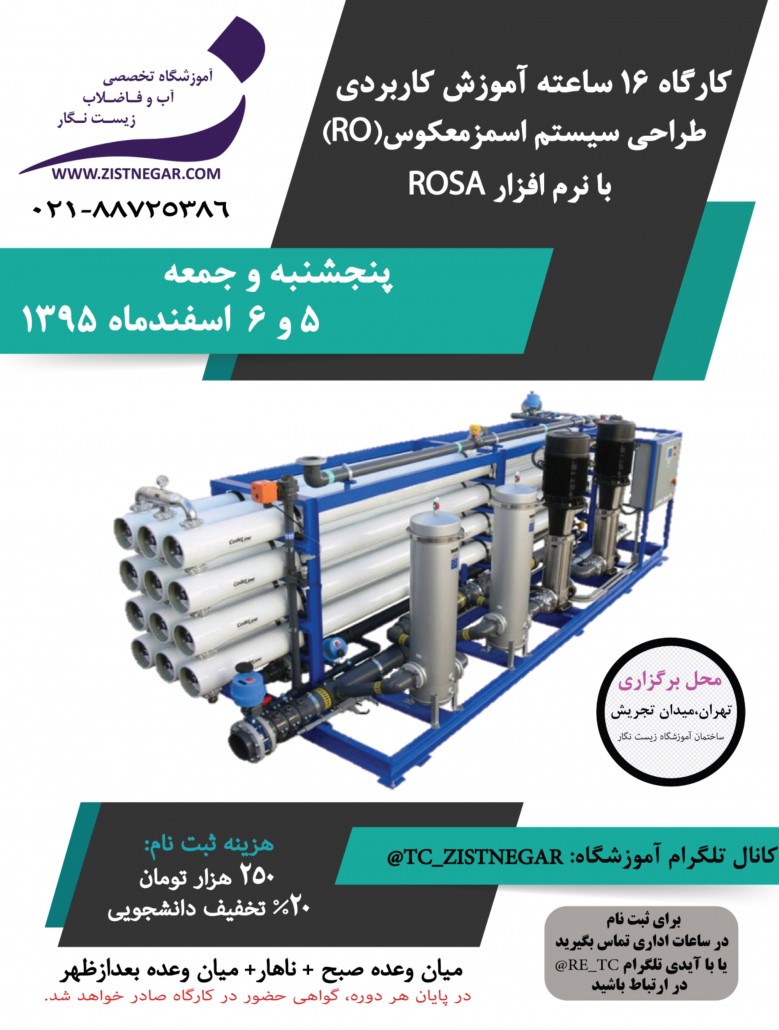 کارگاه آموزشی طراحی سیستم اسمزمعکوس(RO) توسط نرم افزار ROSA