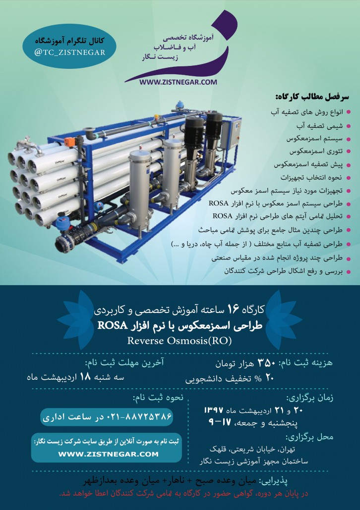 کارگاه آموزشی طراحی سیستم اسمزمعکوس(RO) توسط نرم افزار ROSA