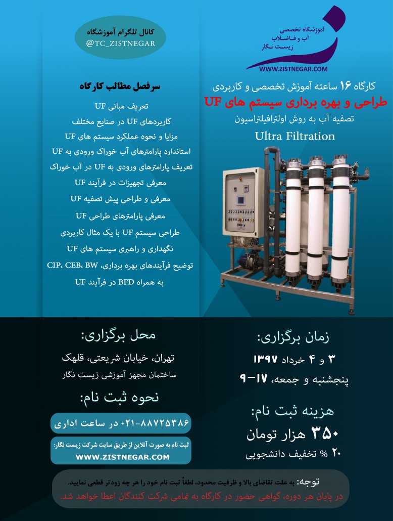کارگاه آموزشی طراحی و بهره برداری سیستم های اولترافیلتراسیون (UF)